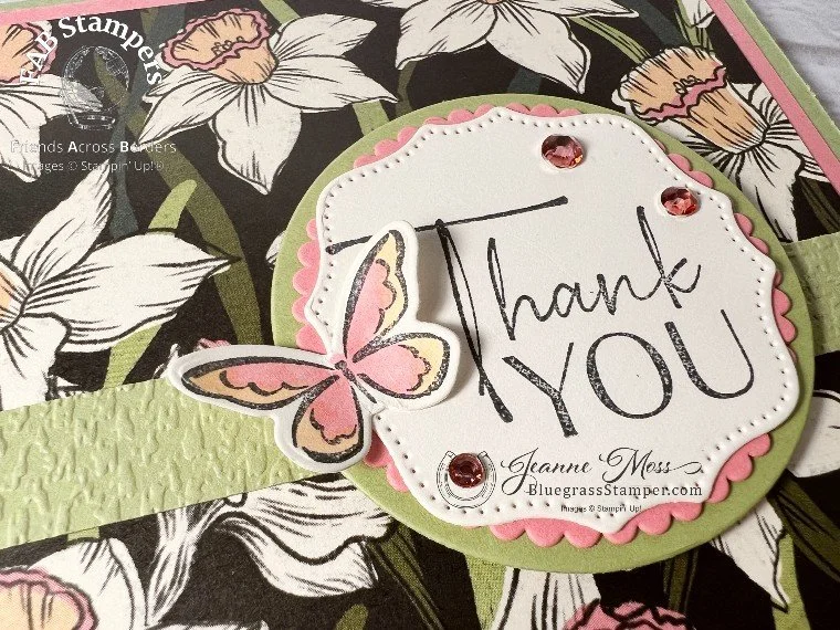 Today it's Jeanne’s turn and she is making a very simple Thank You card using the Daffodil Afternoon DSP (Designer Series Paper). You can get this Sale-a-bration paper FREE until the end of the month with a qualifying order!!