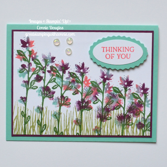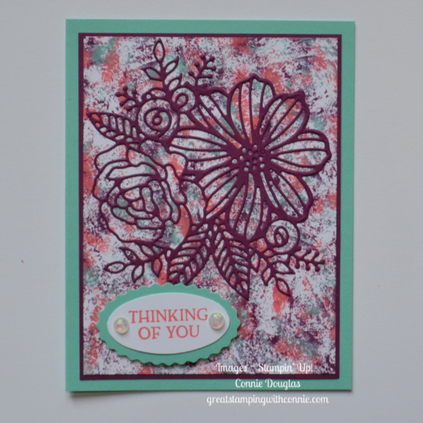 This card is very similar to one from last week, but this time I used Coastal Cabana, Flirty Flamingo and Rich Razzleberry Reinkers to make my stamp pad. I really like the spring look of these colours.