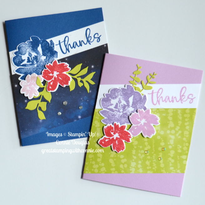 The DSP on both cards is from the Stargazing pack. Some of this DSP is very planet and star oriented, but lots of the pieces just have random patterns and shades when you cut them card size. If you don’t add star and planet elements, you would not know that this is the theme of the paper. I always try to look at my DSP not just from the intended theme, but also try to think outside the box to find other themes and uses for the various patterns.