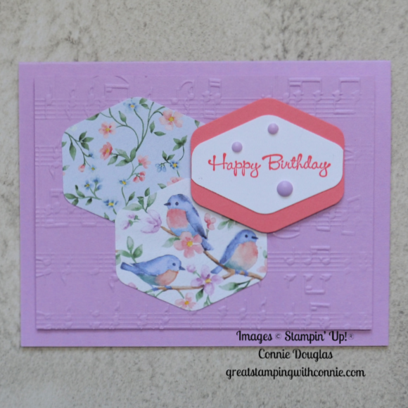 This pretty Designer Series Paper is Flight & Airy. The bird images in the paper are really cute, but there are some patterns with small flowers like the top one on this card that I absolutely love! The sentiment is from the Go To Greetings stamp set.