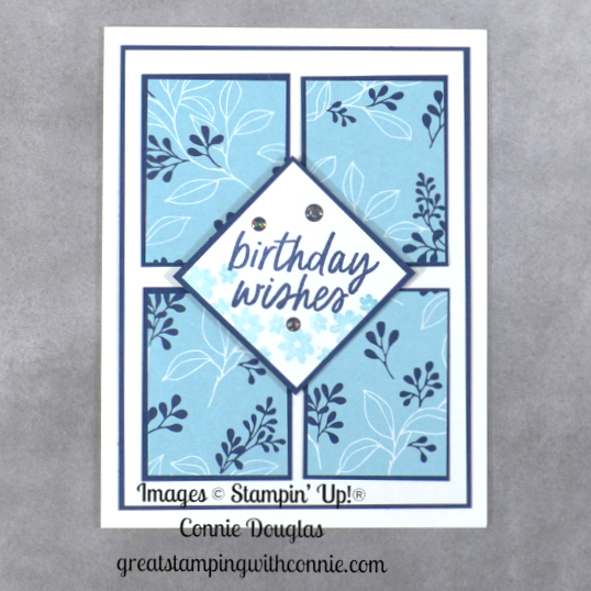 Do you have the Product of the Month for December? This card is made using one of the papers from the True Blue Florals Designer Series Paper. You can get this beautiful paper for just $5.00 with any $100.00 order during the month of December or while supplies last. If you like blue, you will love this whole pack of exclusive DSP.