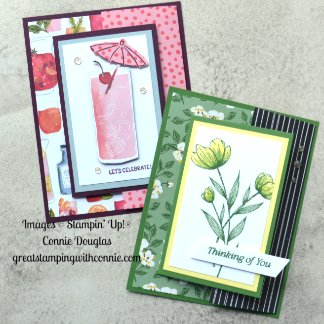 I made the same style of card using the Celebratory Sips DSP for the second card.