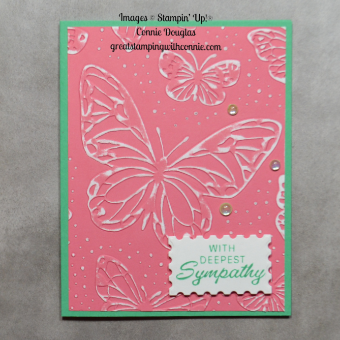 When you emboss this cardstock it breaks some of the fibres of the paper and the white core shows through. If you sand it, you will expose more of the white core and creating some great interest on your cardstock. This is Strawberry Slush cardstock and the Dotted Circles 3D Embossing Folder.