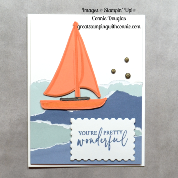 For this card I used the lighter and darker sides of Cloud Cover and Misty Moonlight cardstock. I also tore the paper to expose more of the white core. The two-tones of each piece make it very versatile for layering.